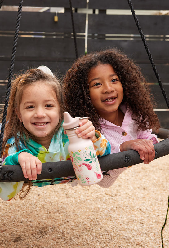 Our Classic stainless steel 355ml sippy cup and water bottle is designed with kids in mind. Spill proof sippy cap with dust cover, plus swivel metal loop so it can be easily attached to stroller or bag. Designed to play hard, our chip-resistant Klean Coat finish is durable and safe for people and planet. Narrow profile for easy gripping that fits little hands perfectly. Interchangeable caps for easy transition as kids grow up, providing a lifetime of use, from baby bottle to sippy to sports bottle at school.