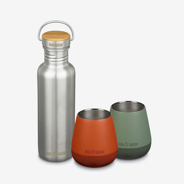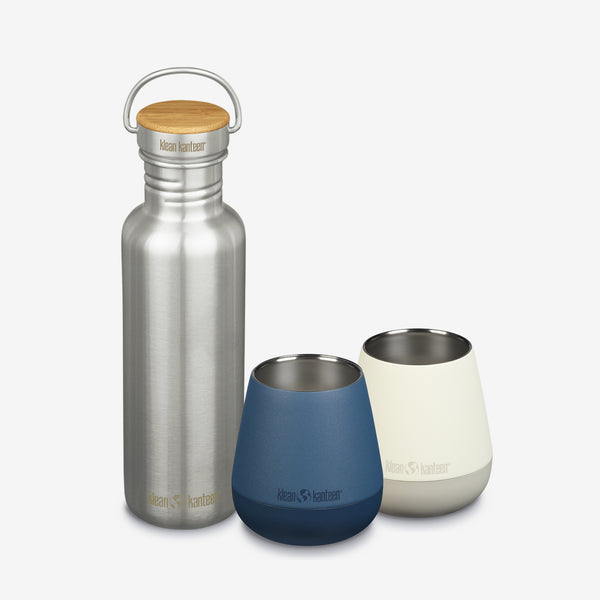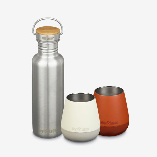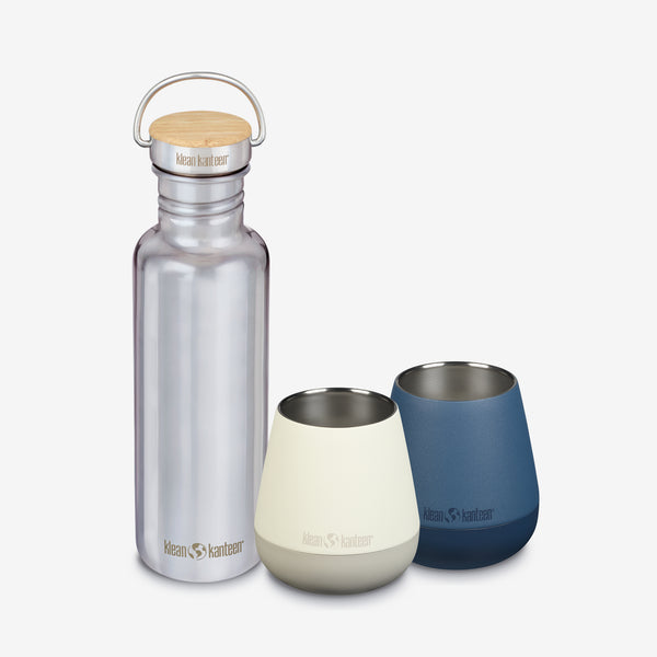Our Wine Bundle is designed to enjoy a couple glasses of wine with friends or family. Including our best selling and stylish 27oz Reflect with bamboo cap, that fits an entire bottle of wine! Plus two 10oz Rise wine tumblers for sipping wine with a friend or special someone, at home or on-the-go. This stainless steel bundled gift set is great for wine lovers, and any cocktails or beverages, with tumblers featuring double-wall vacuum insulation and Klean Coat™ powder coat finish. Pick your favorite colours and pairings!
